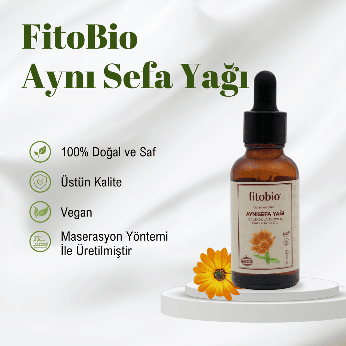 Aynısefa yağı, yüzlerce yıllardır bilinen ve kullanılan bir yağdır. Aynısefa (Calendula officinalis) bitkisinin çiçekleri kullanılarak sızma zeytinyağında özel maserasyon tekniği kullanılarak hazırlanmıştır.